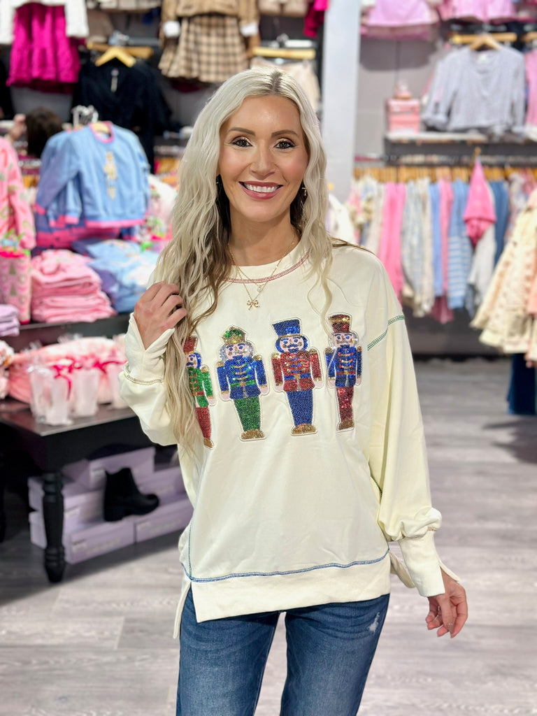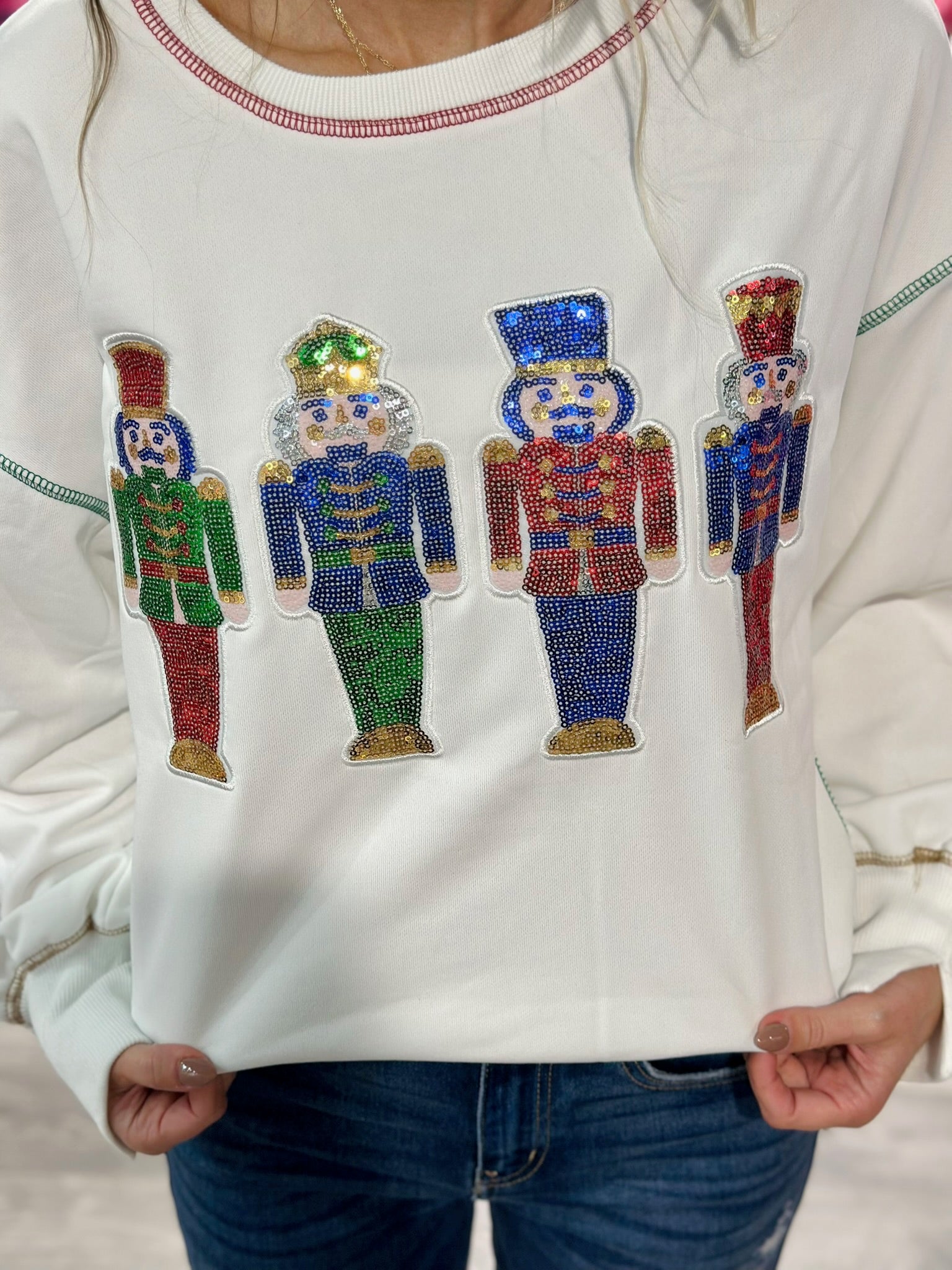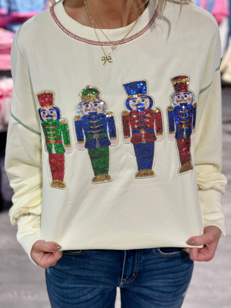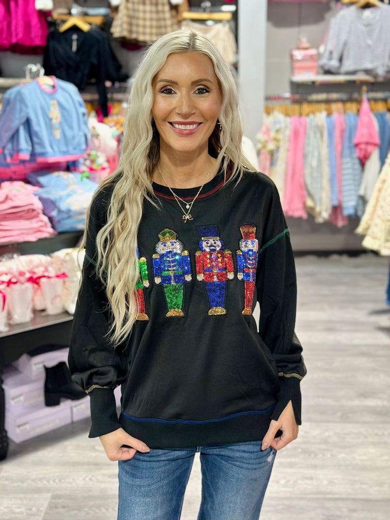 Save on yearly favorites this holiday season! This sequin nutcracker pullover is a showstopper without making a dent in your bank!