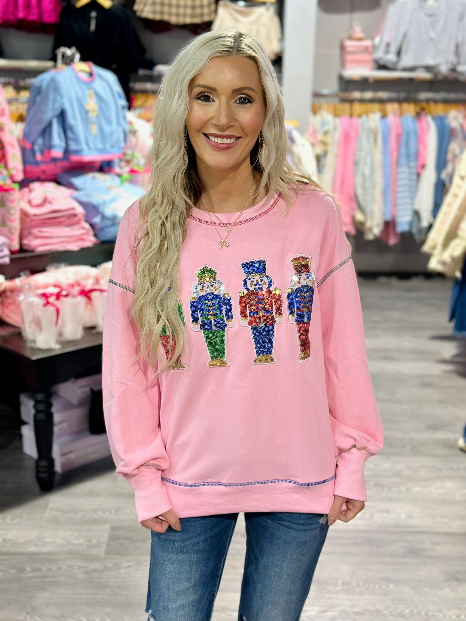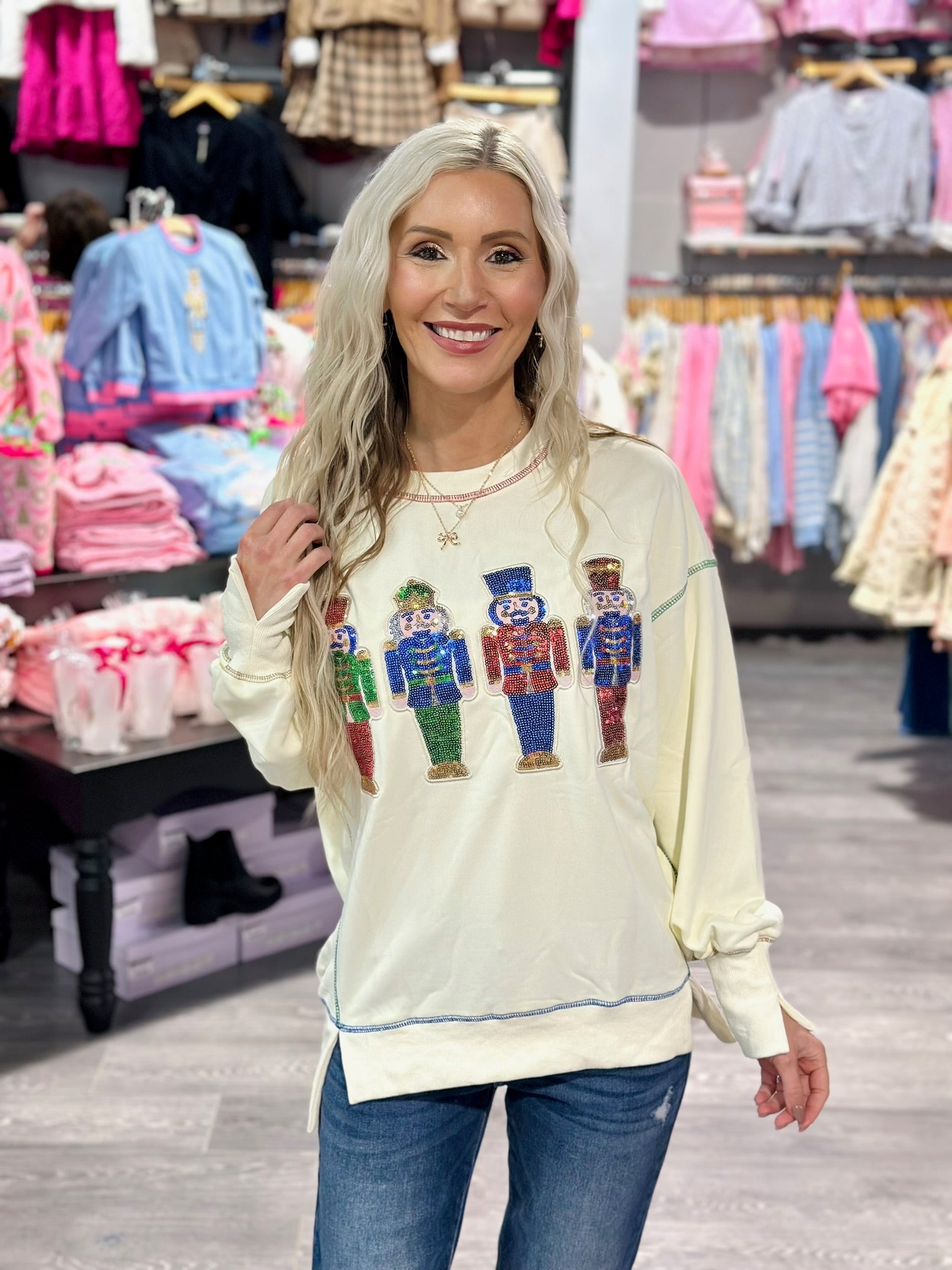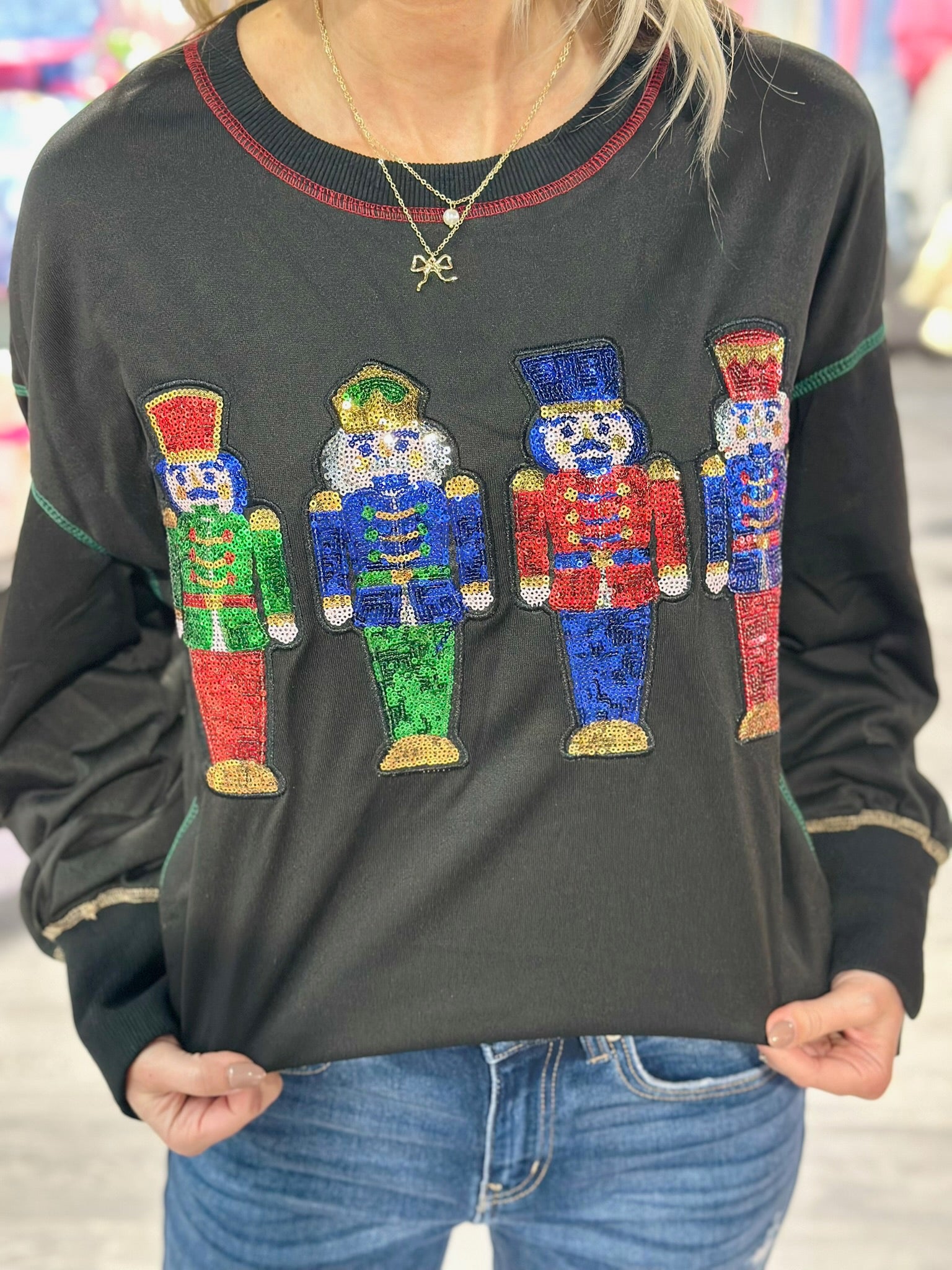 Save on yearly favorites this holiday season! This sequin nutcracker pullover is a showstopper without making a dent in your bank!