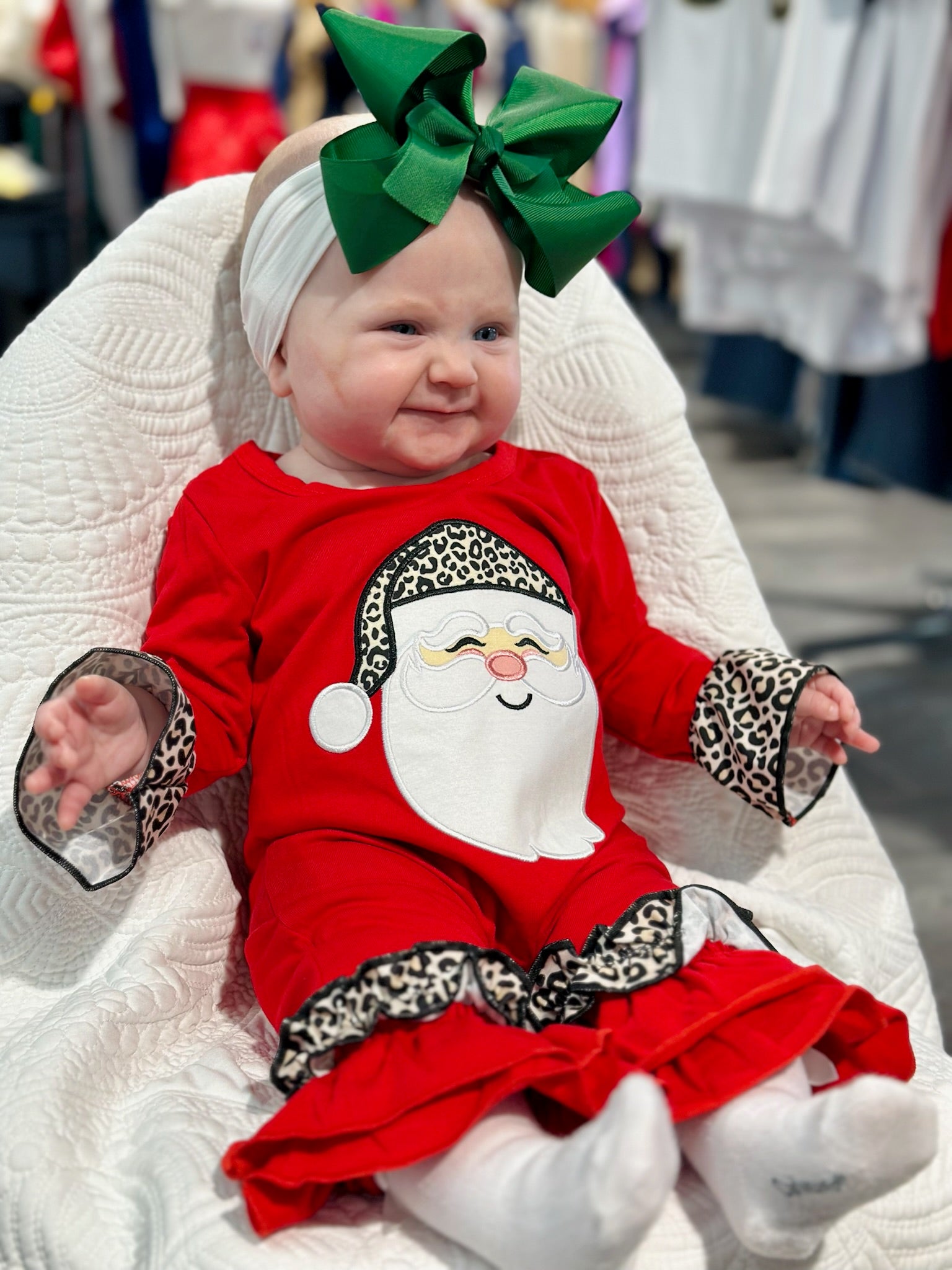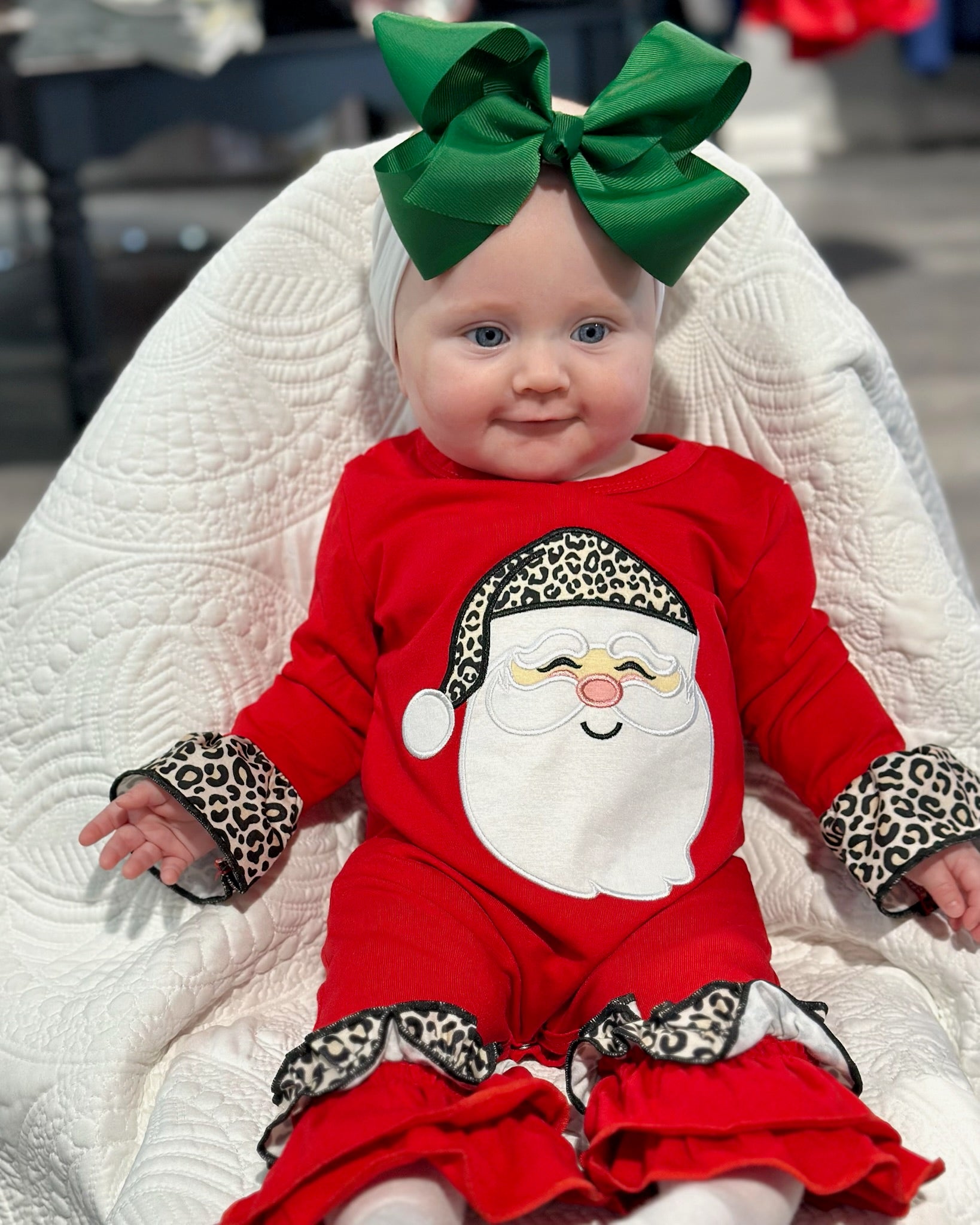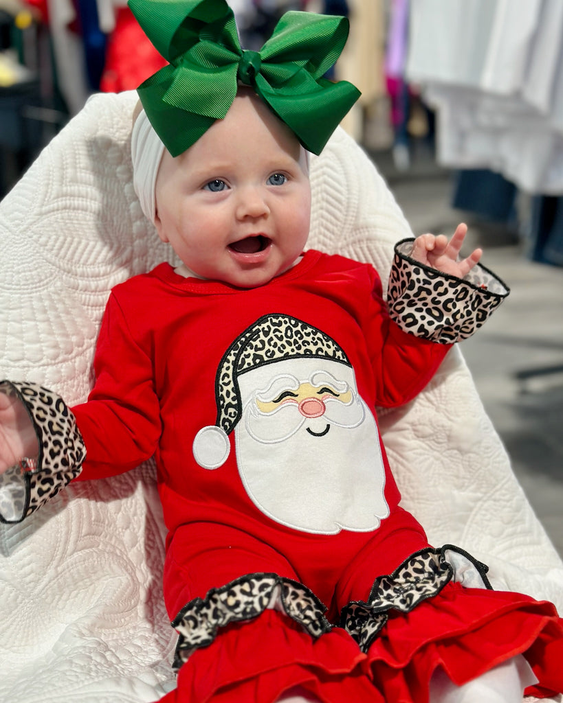 Infant Leopard Santa Patch Pant Onesie (red)