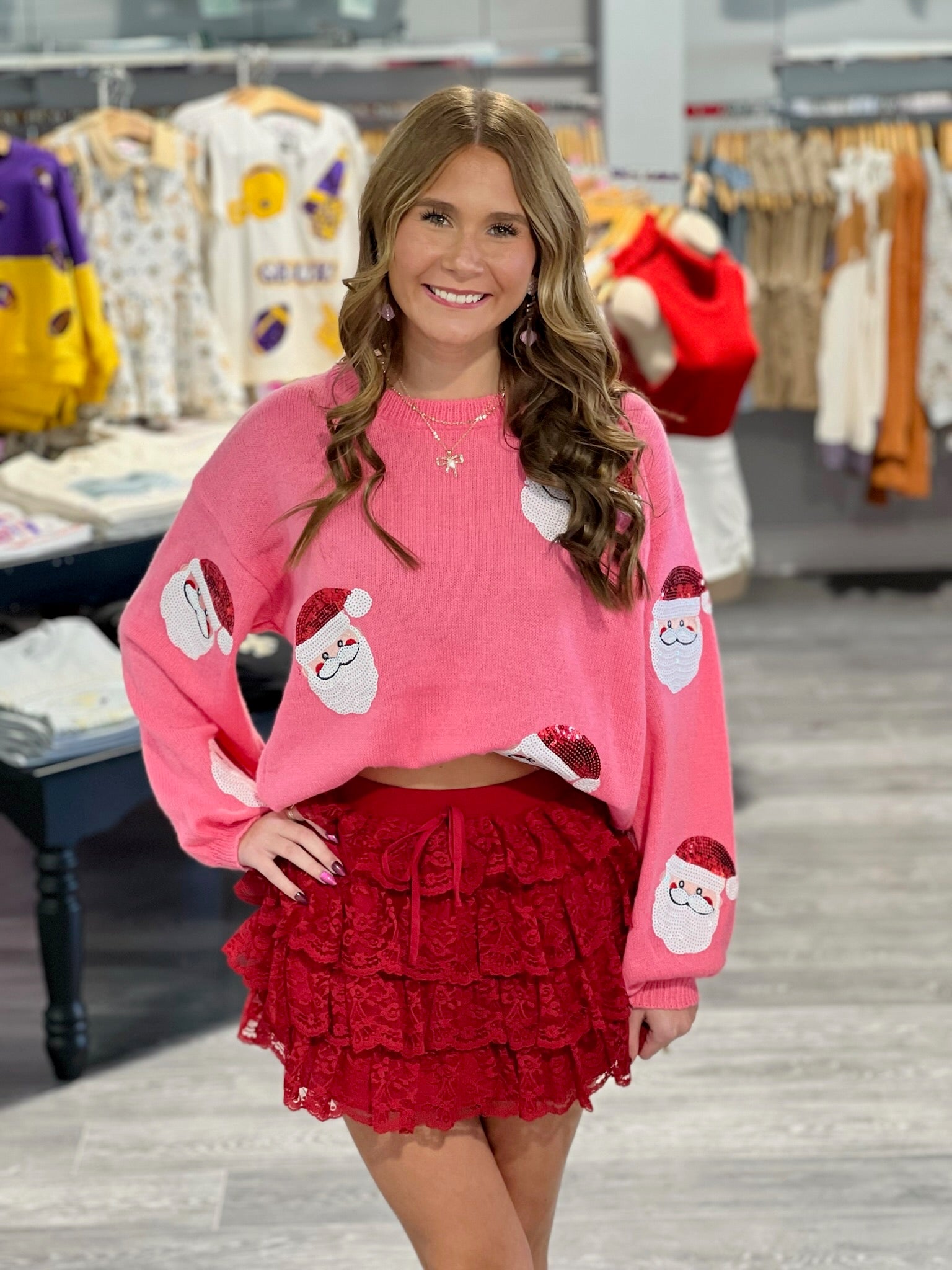 Get into the holiday spirit with this classic red Santa sweater! Cozy, festive, and full of cheerful charm, it features a playful Santa design that brings instant holiday joy. Perfect for parties, family gatherings, or casual winter days, this sweater makes spreading Christmas cheer effortless and fun.