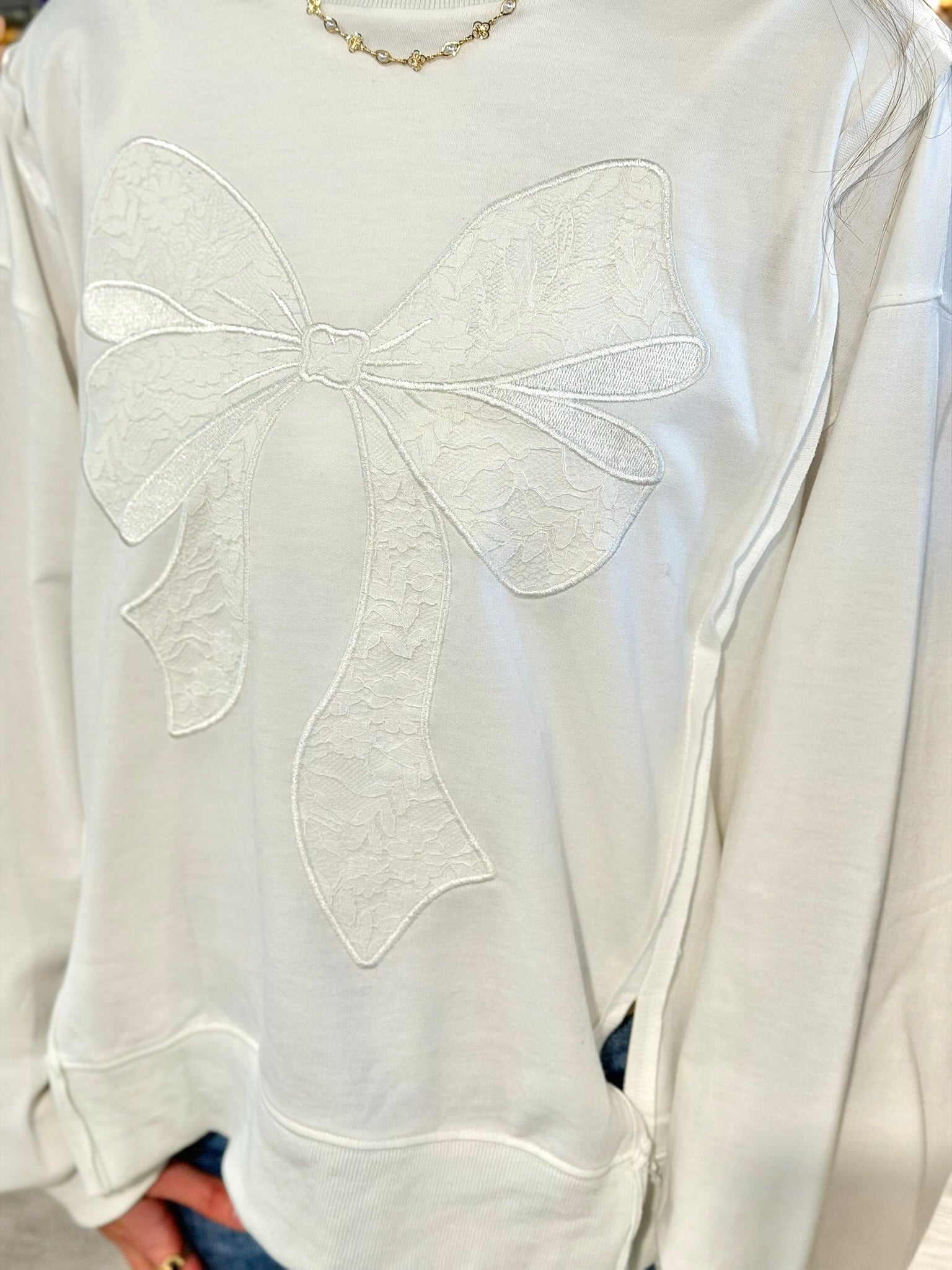 Embroidered Bow Pullover - Small is backordered and will ship as soon as it is back in stock.