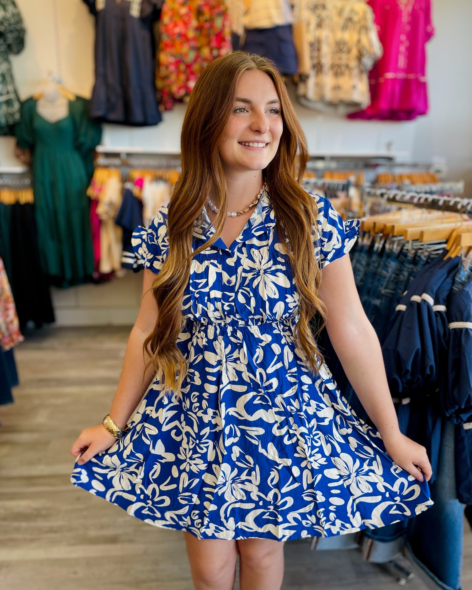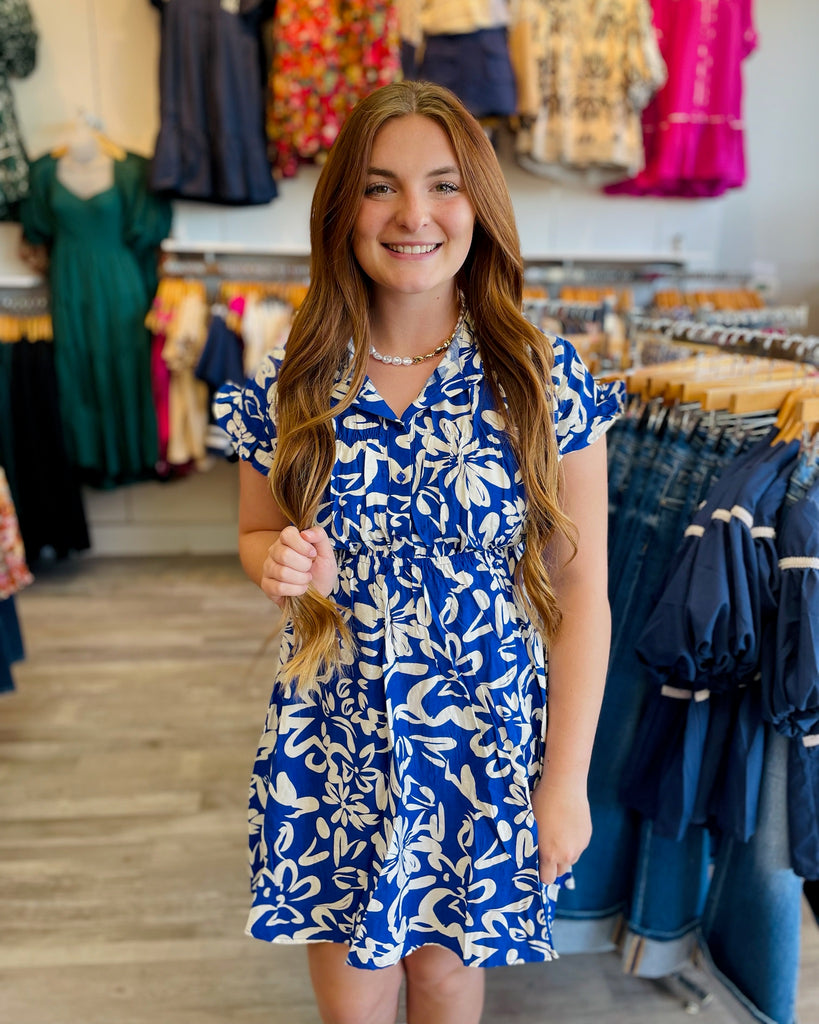 This adorable dress comes in purple ๐Ÿ’œ, blue ๐Ÿ’™, and orange ๐Ÿงก! It's got a pretty floral pattern with white blowers on a bold colored background, short ruffly sleeves, and a flirty skater skirt. Perfect for a day out shopping, tailgating, or a girls night out. How would you style it? ๐Ÿ’ƒ๐ŸŒป