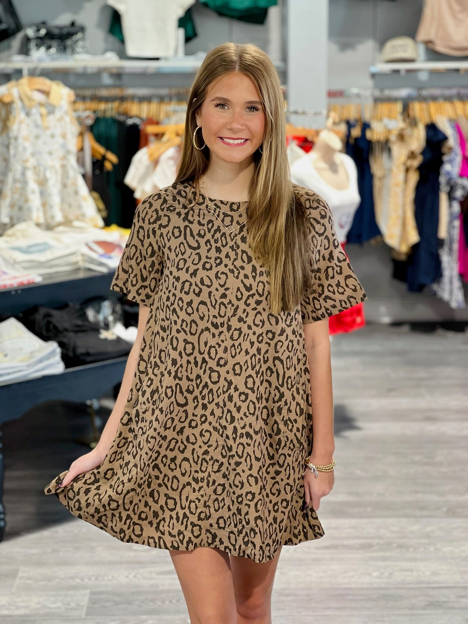 "Unleash your wild side with the Run Wild Dress. This dress features a bold animal print that will have you standing out from the pack. Let your personality shine in this playful and eye-catching piece."