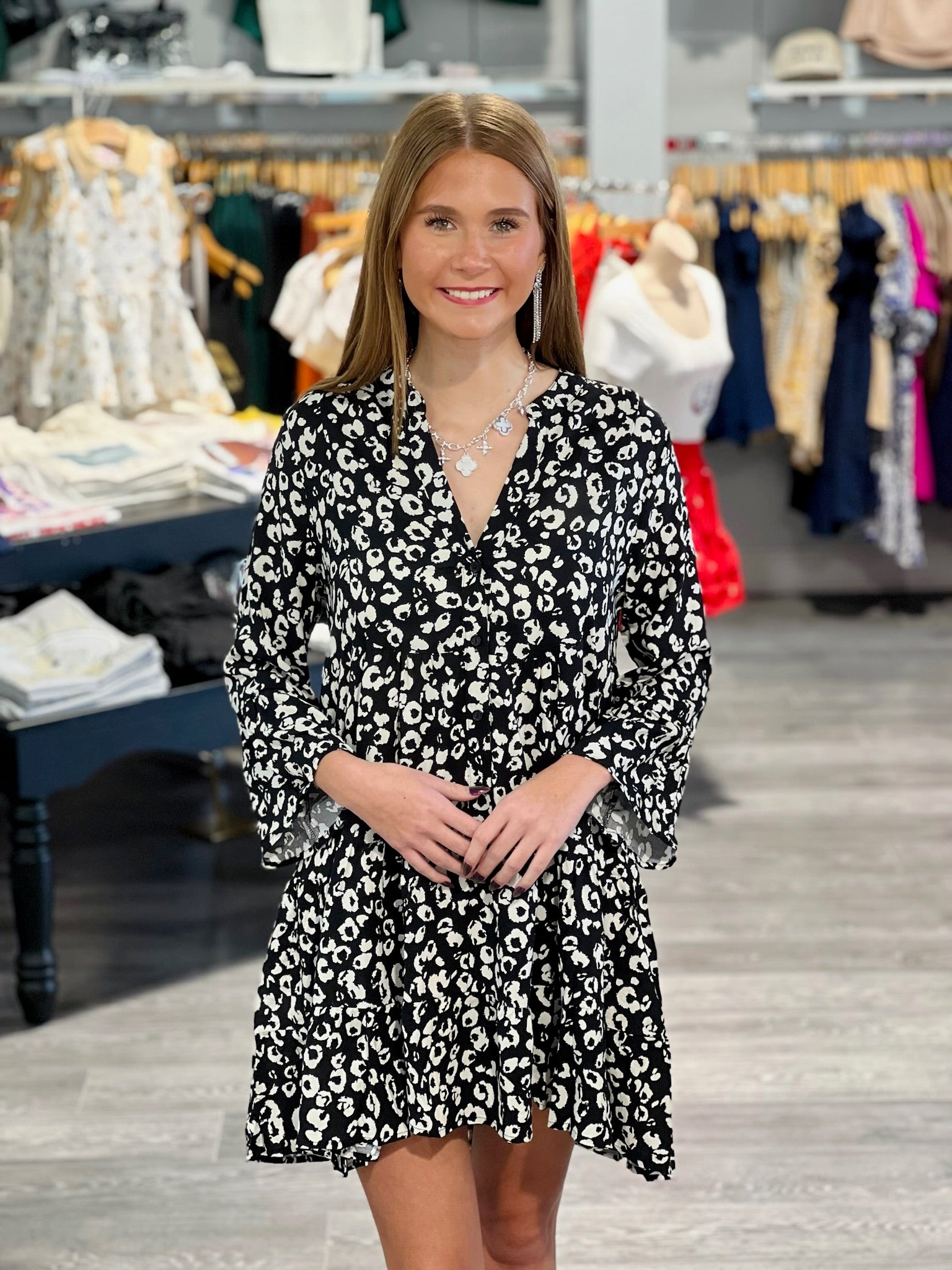 "Unleash your wild side with the Shannon Mid Sleeve Babydoll Dress! This playful dress features a fierce leopard print and comfortable mid sleeves, perfect for an effortless and stylish look. Go ahead, pounce on this purrfect addition to your wardrobe!"