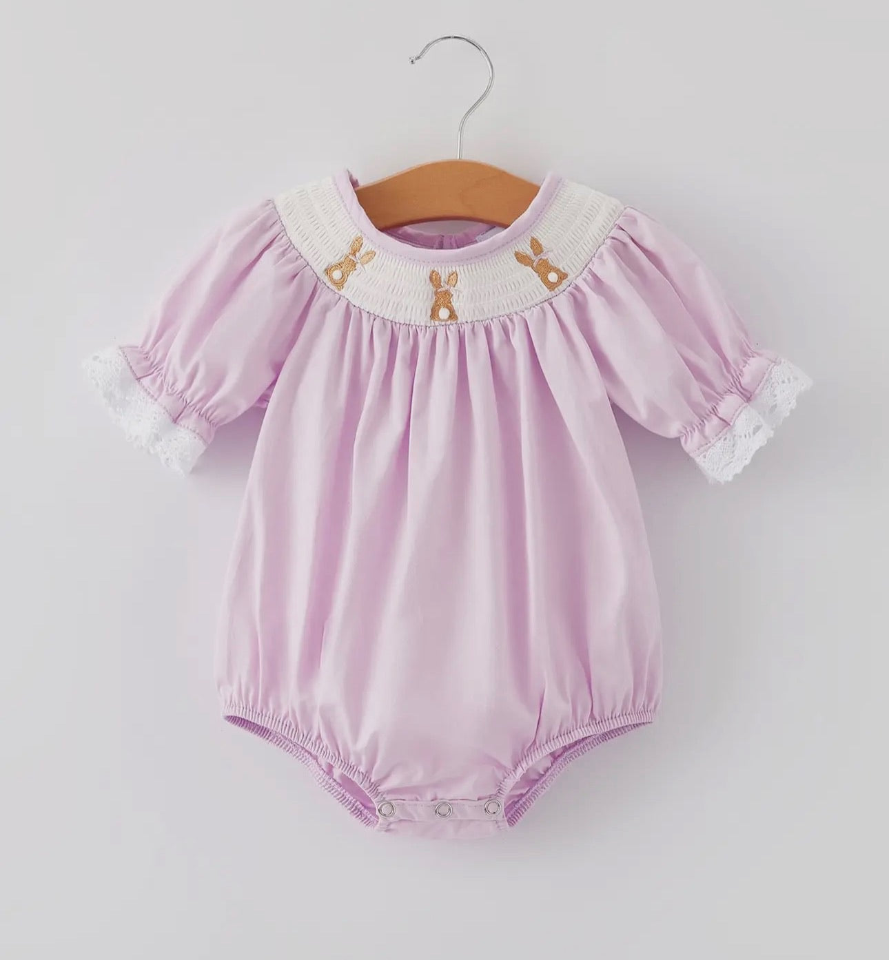 Infant Bunny Smocked Lace Romper - 3M is backordered and will ship as soon as it is back in stock.