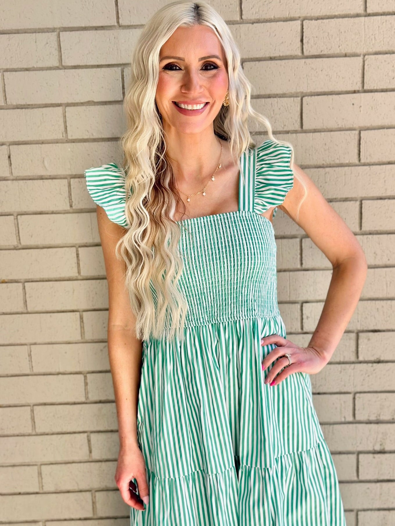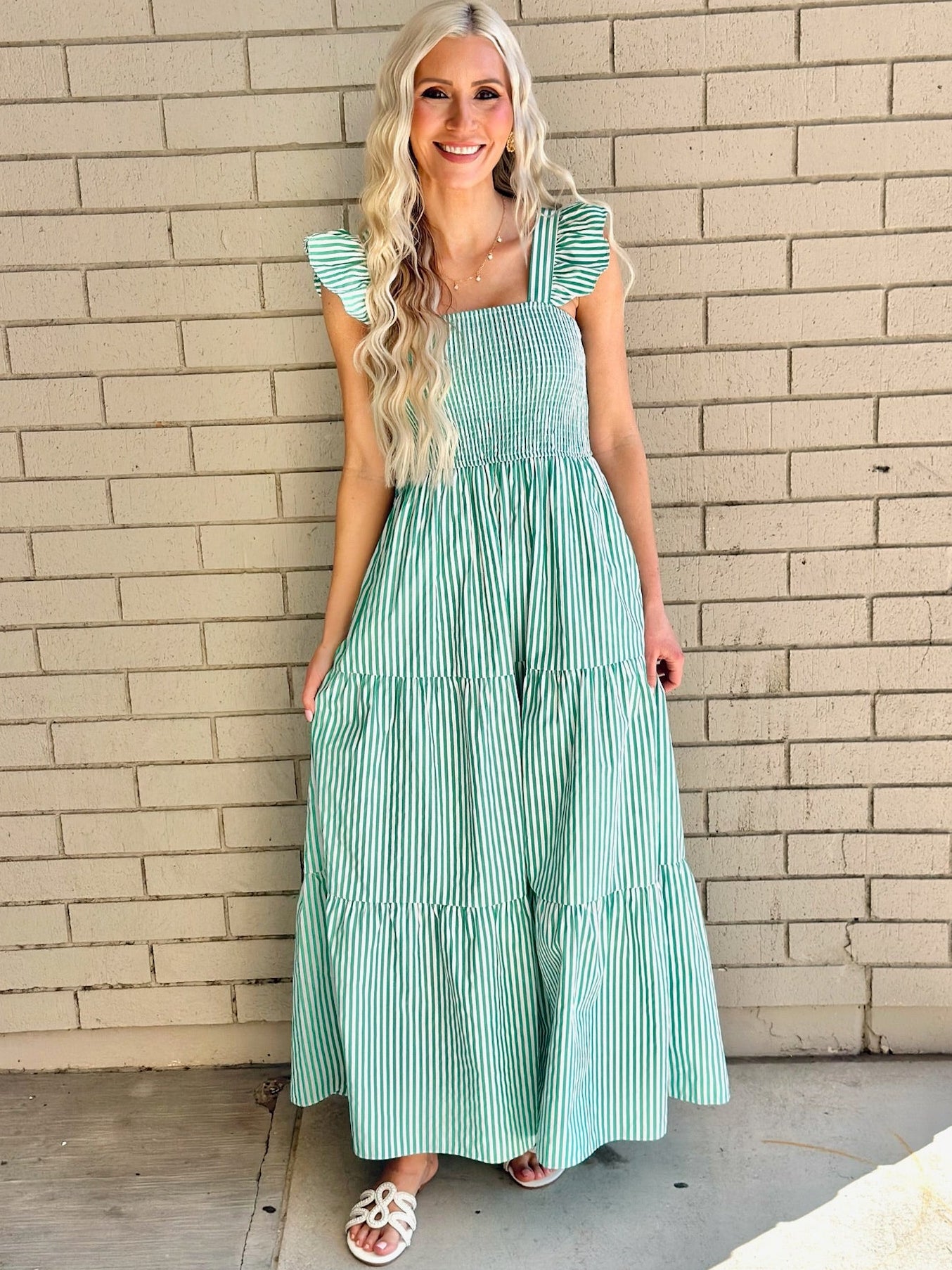 Step into Spring in our new Maxi Dress collection! This striped maxi dress features smocking on the top for an adjustable fit.