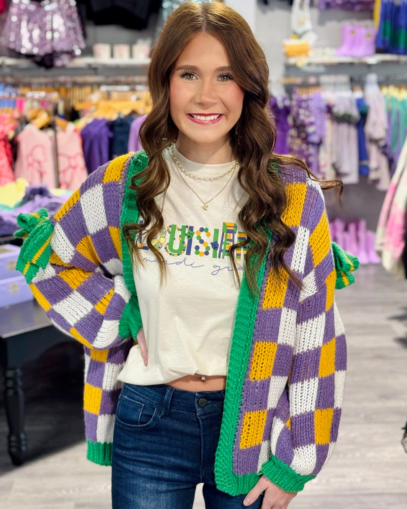 Mardi Checkered Cardigan - Small is backordered and will ship as soon as it is back in stock.