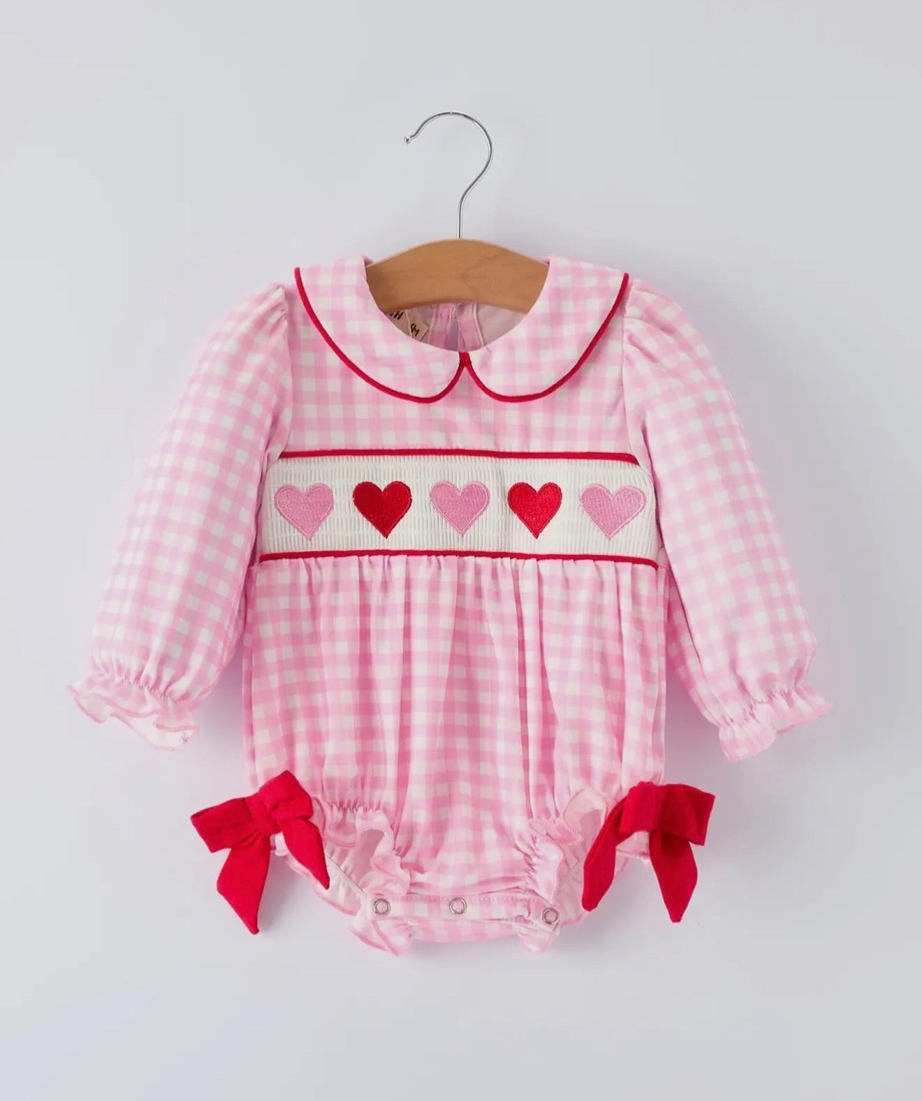 Infant Gingham Smocked Heart Romper - 3M is backordered and will ship as soon as it is back in stock.