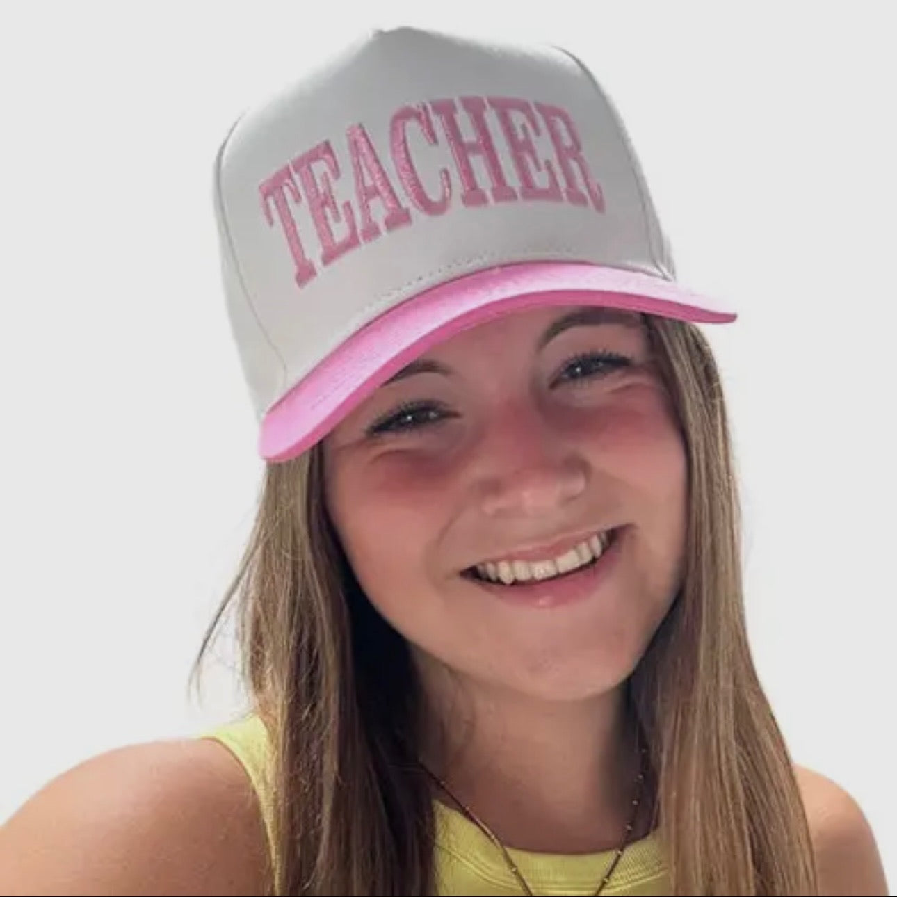 Show off your teacher pride in style with this Lulumac hat featuring 'TEACHER' boldly displayed across the front. Designed in a cheerful pink hue, this comfortable cap adds a fun pop of color to any casual outfit. With its relaxed fit and easy to wear design, it’s perfect for school days, weekends, or as a thoughtful gift for an educator who loves stylish, everyday accessories!