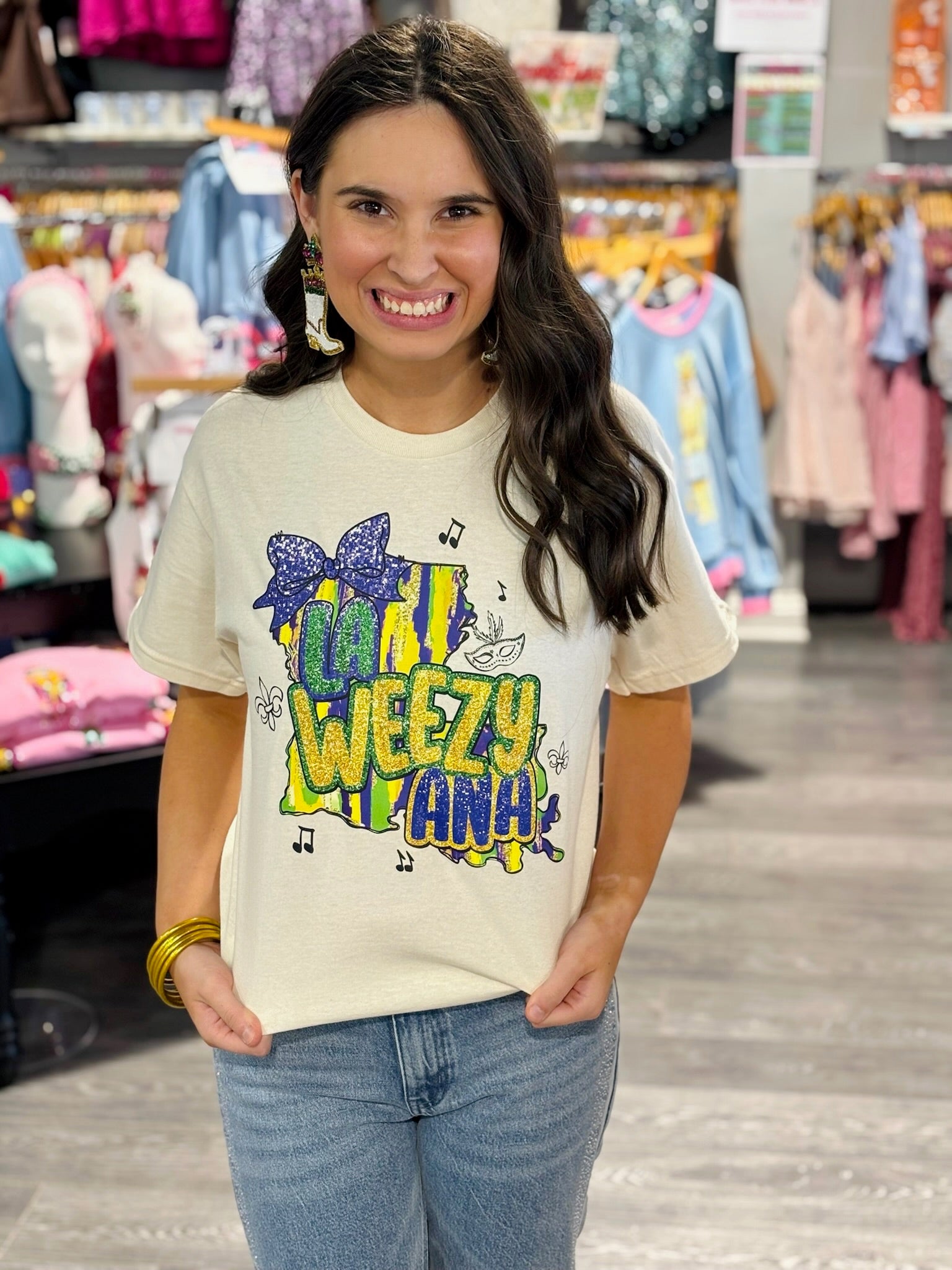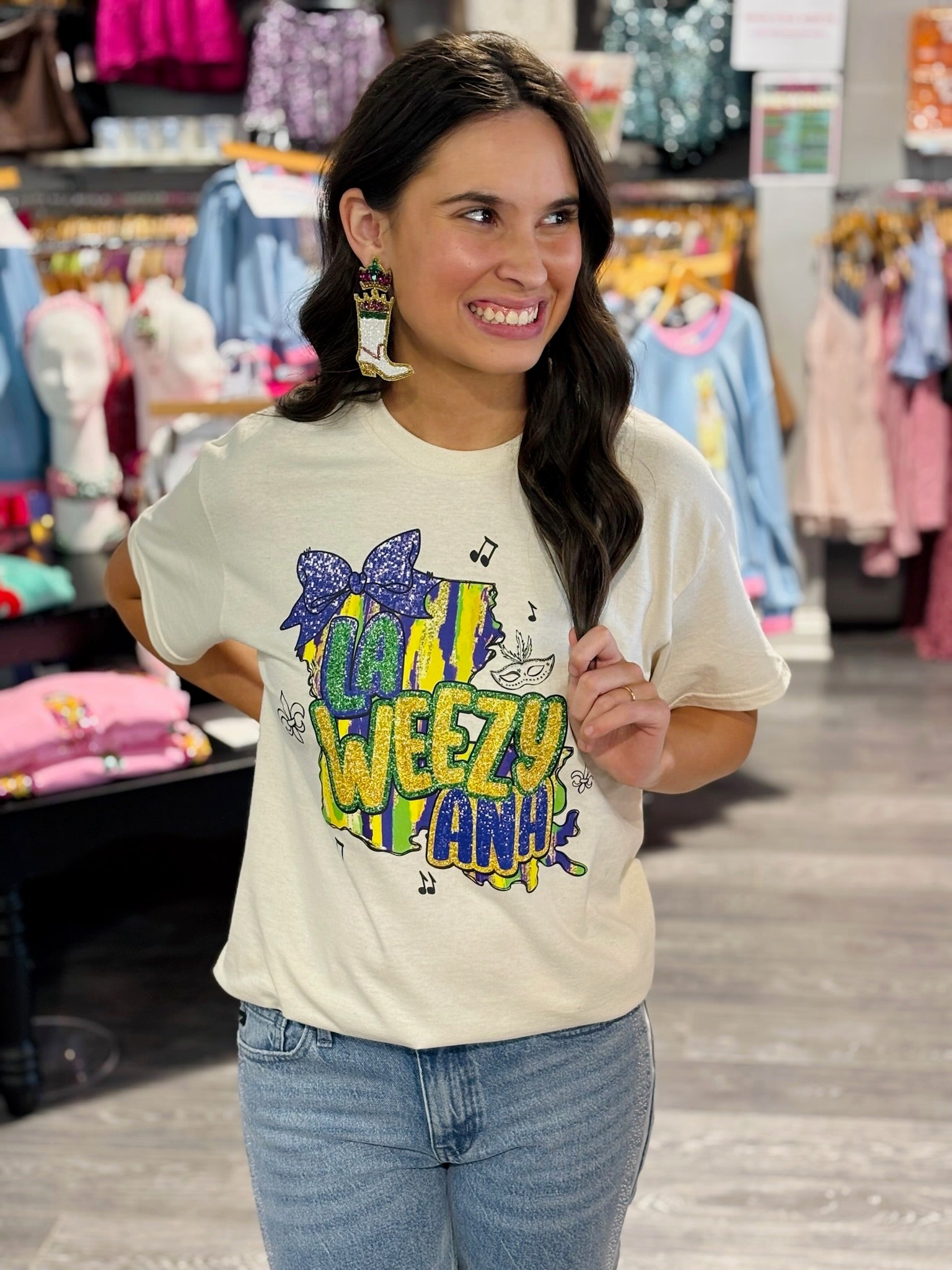LA State Mardi Gras Graphic Tee - Small is backordered and will ship as soon as it is back in stock.