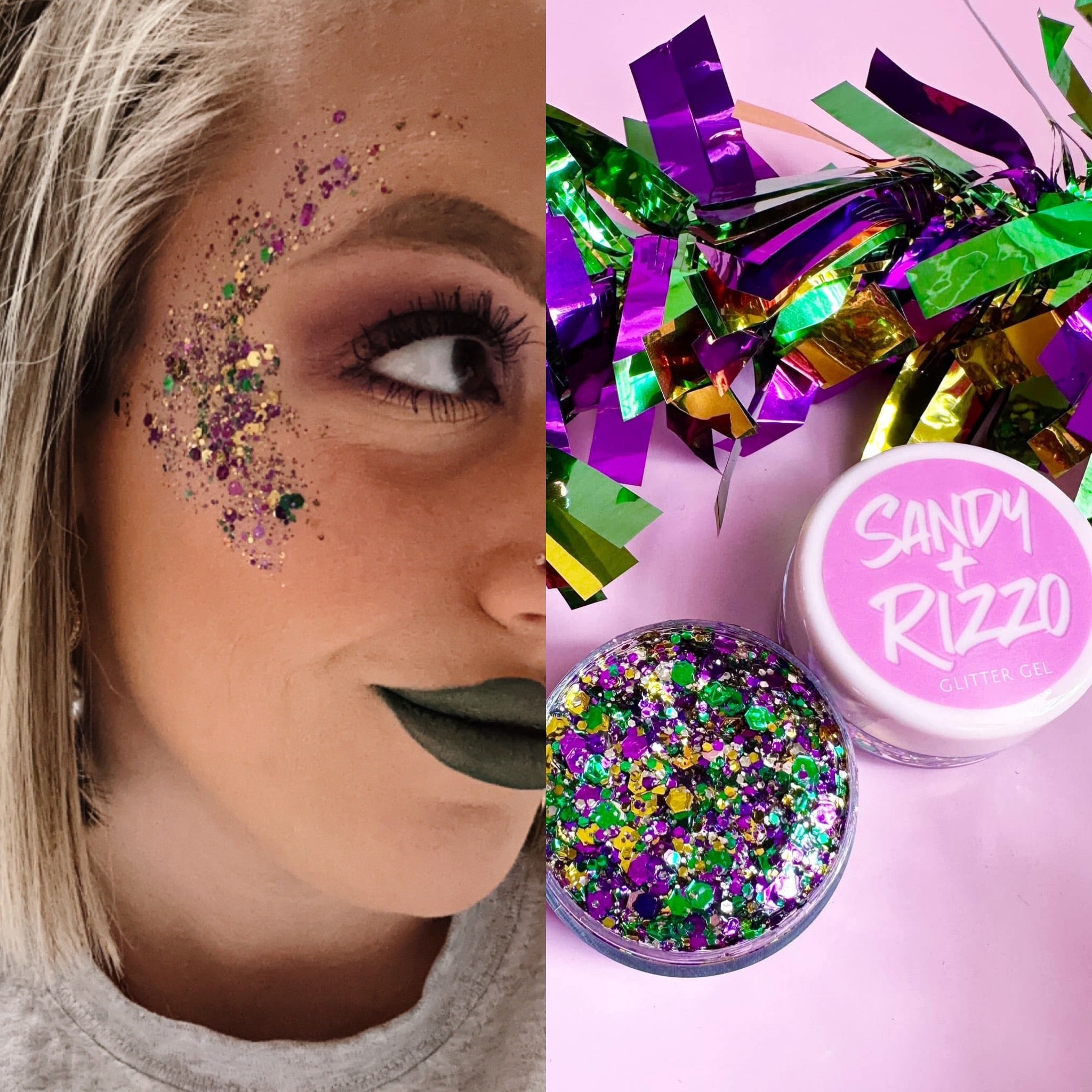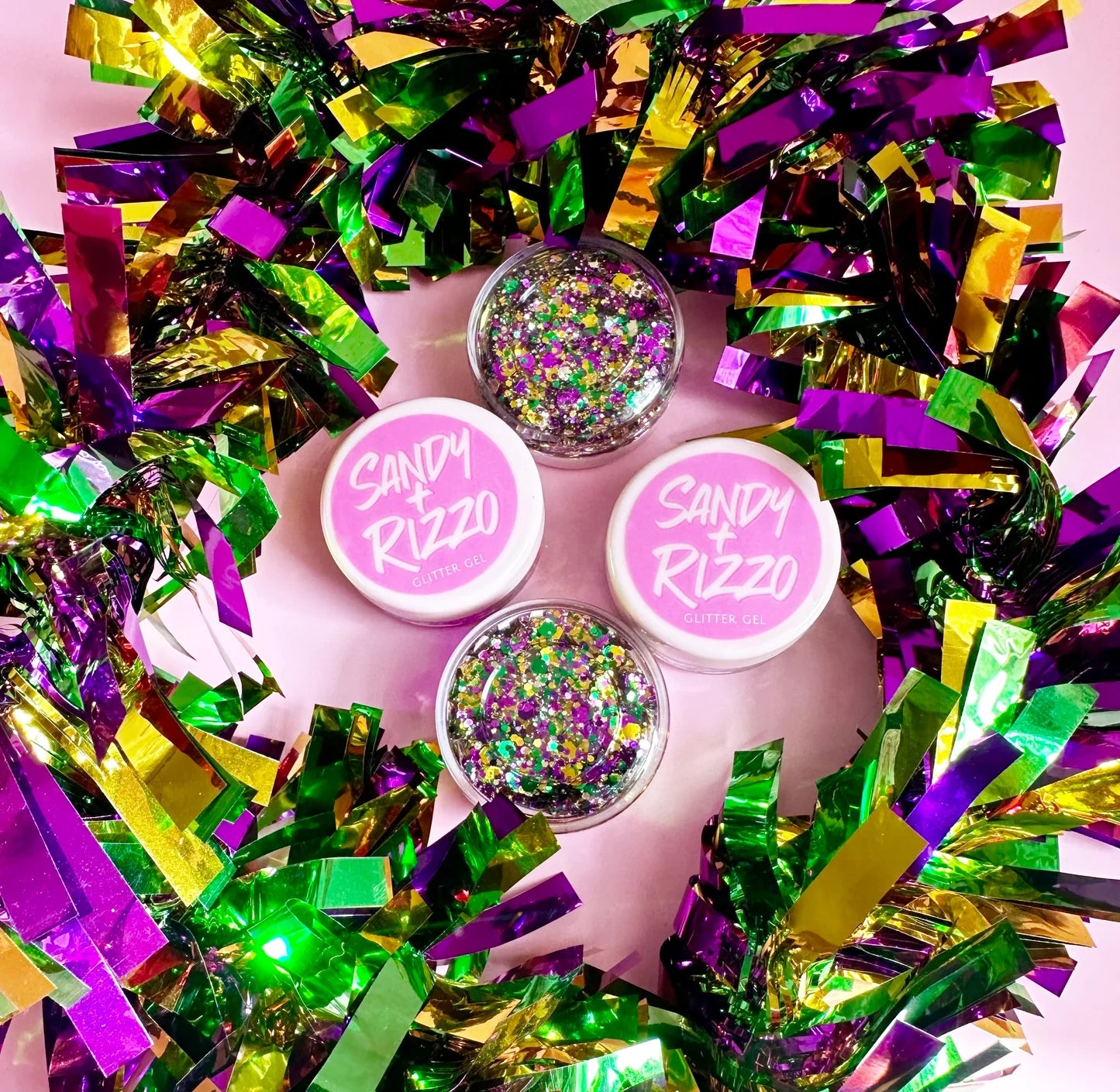 Bring the party spirit to life with Sandy + Rizzo's custom Mardi Gras Glitter Gel, your ticket to carnival glamour! Whether you're hitting the parade route or dancing through the festivities, this shimmering gel adds instant sparkle and festive flair to any celebration. Get ready to shine like the main event itself!