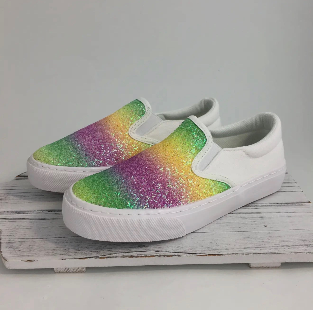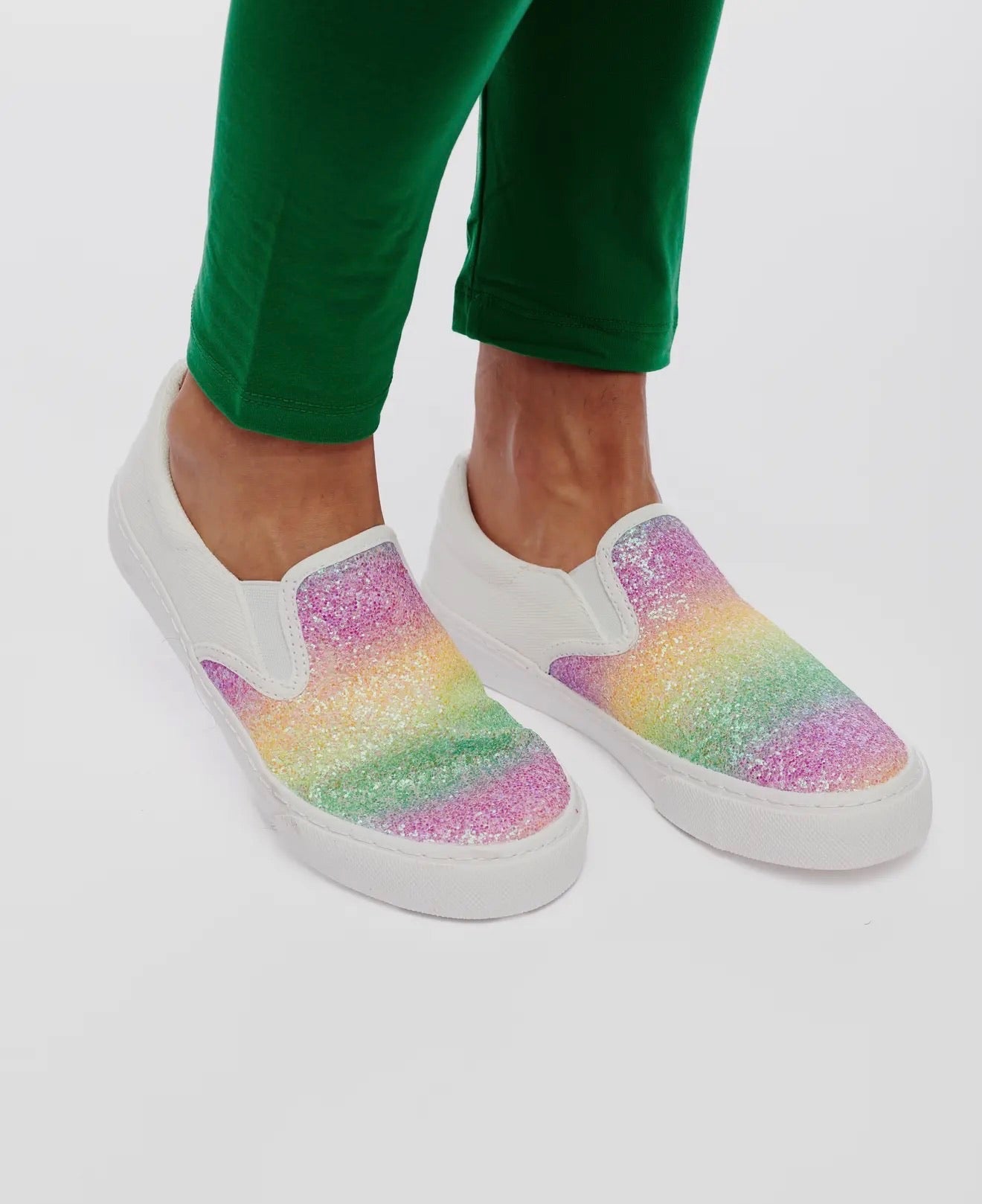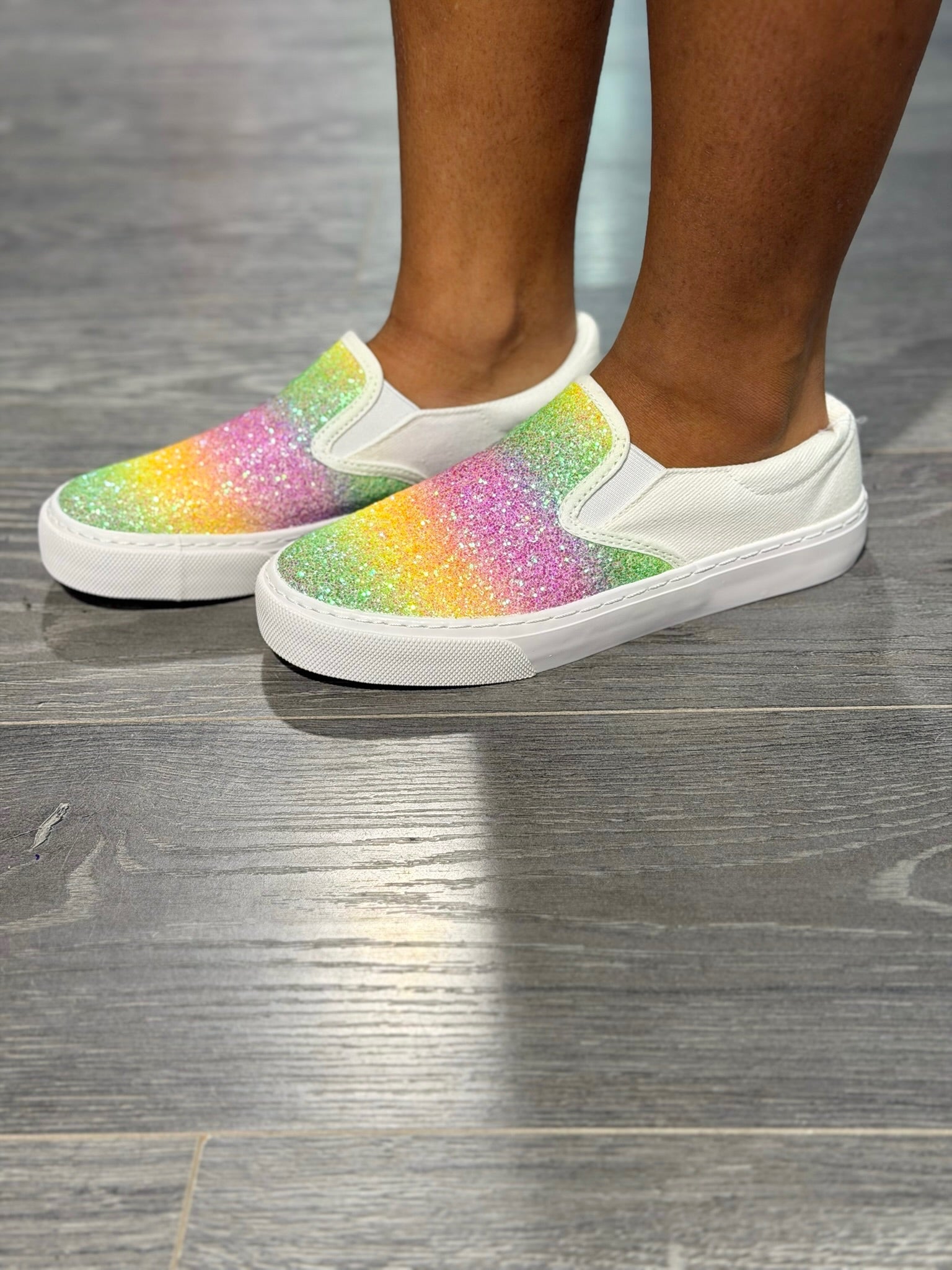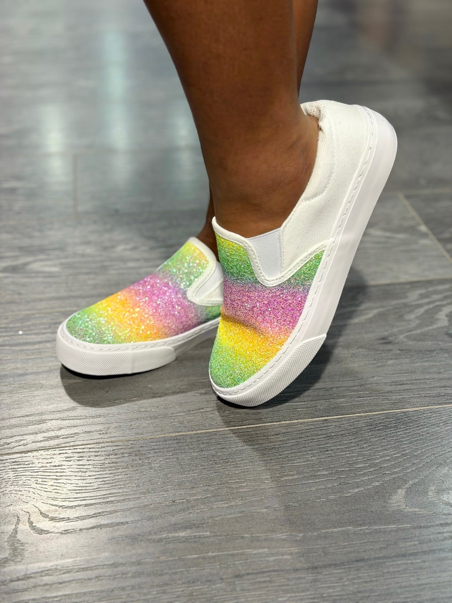 These Mardi Gras slip on sneakers bring instant party vibes with a playful burst of sparkle and color. The slip on design makes them easy to throw on & go! Bold yet versatile, these sneakers are perfect for adding a pop of celebration to casual outfits or making a statement wherever you go. πŸŽ‰πŸ‘Ÿβœ¨