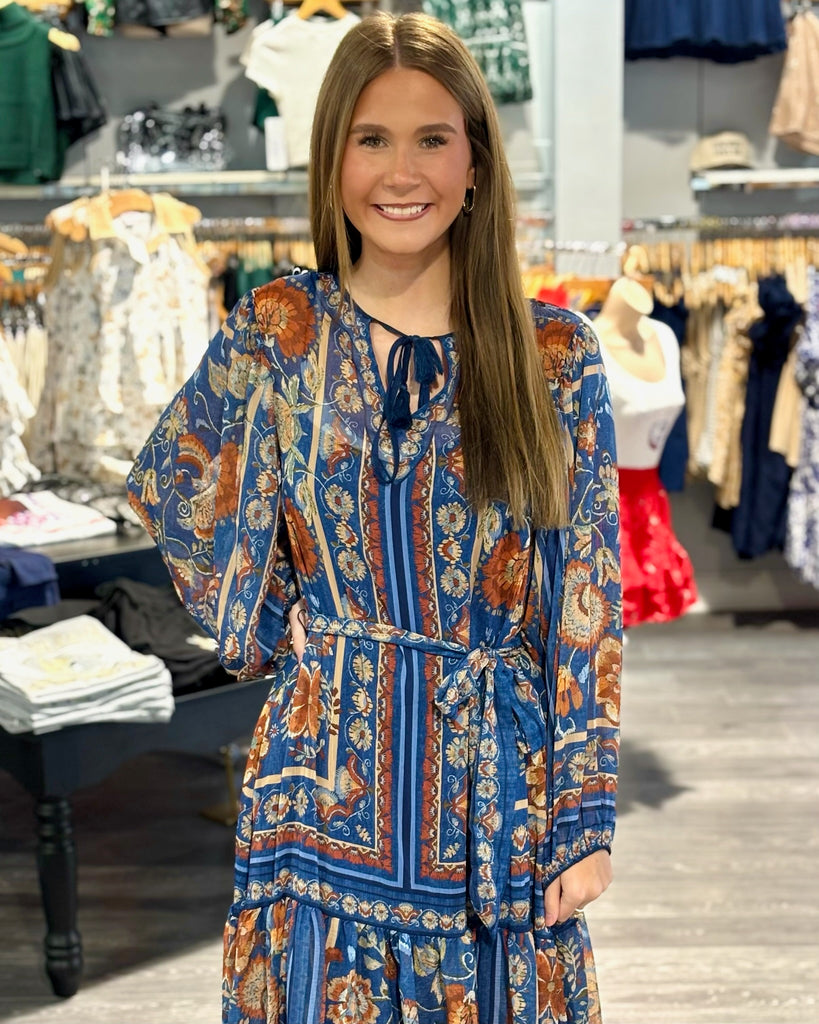 -Get ready to turn heads with the All Eyes On Me Dress! This classy maxi dress features a stunning floral pattern that will make you stand out in any crowd. Perfect for any occasion, it's sure to be the center of attention. (So you can stay stylish without even trying - talk about a win-win!)