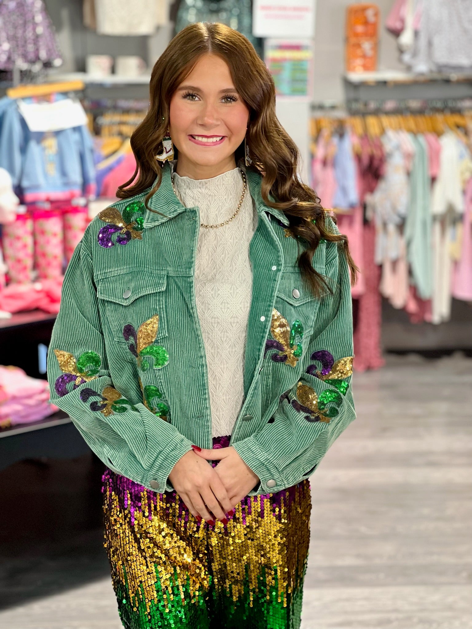 Corduroy Fleur de Lis Mardi Gras Jacket