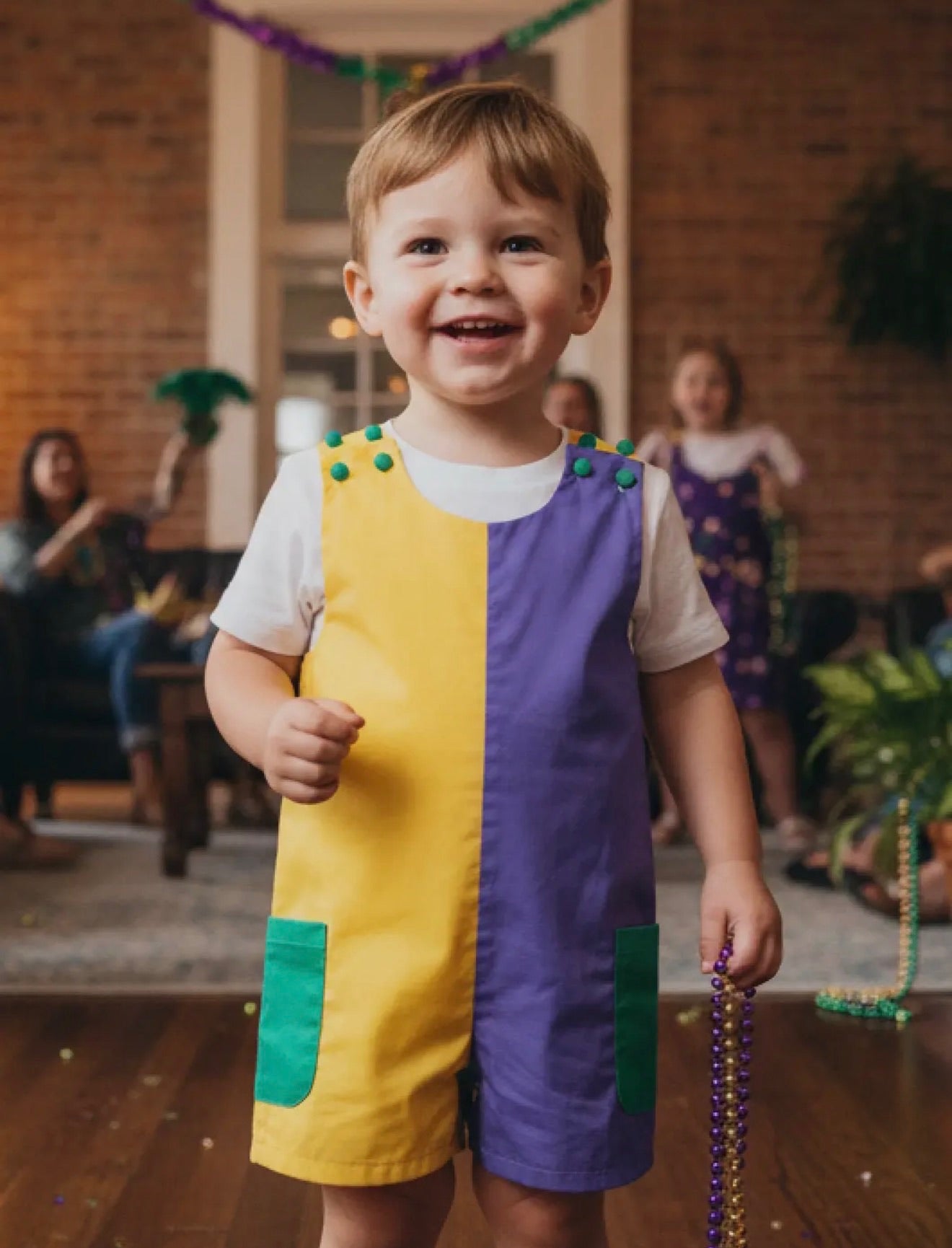 Mardi Color-Block Shortalls - 3-6 months is backordered and will ship as soon as it is back in stock.