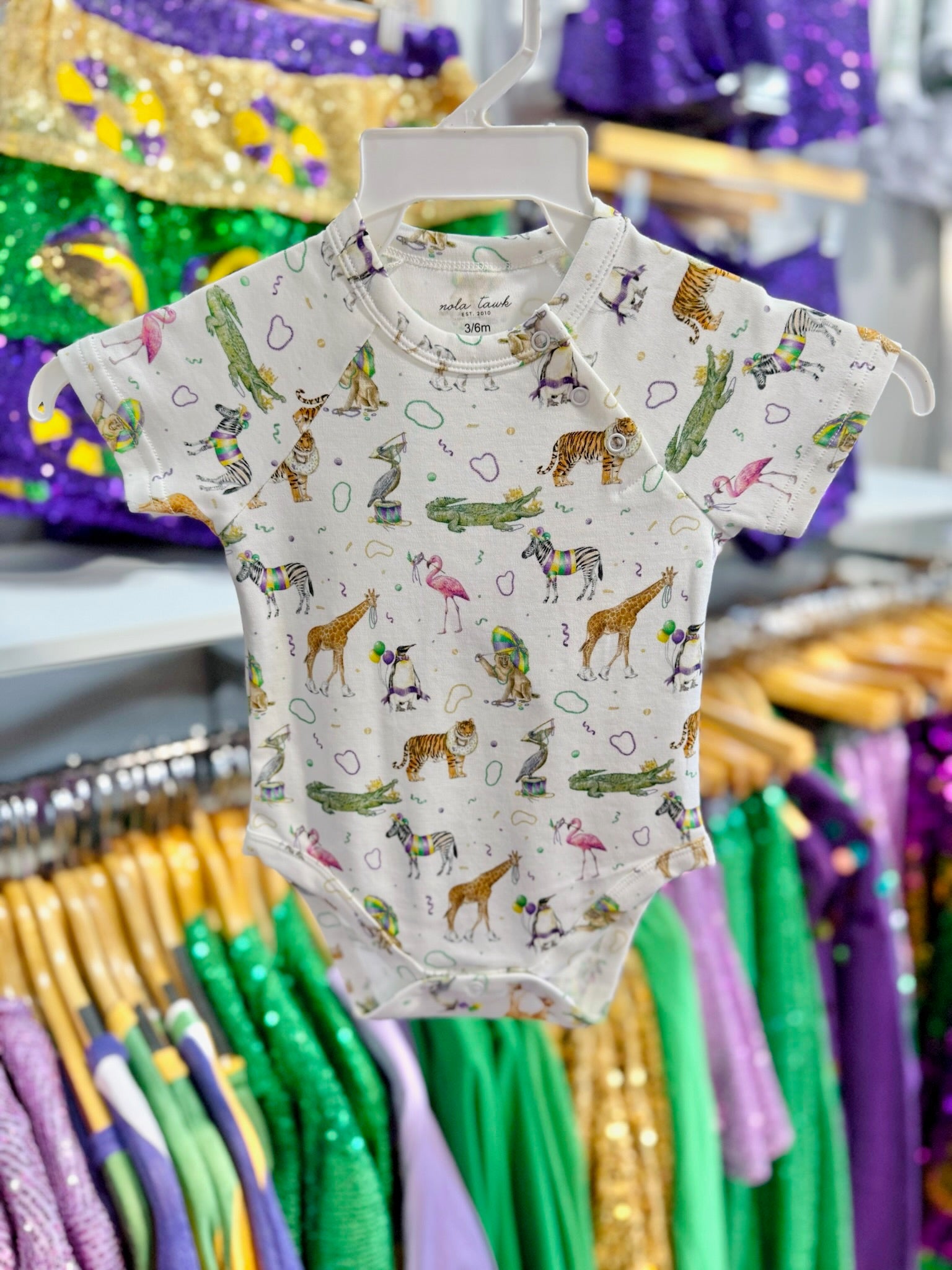 Mardi Party Onsie - 3-6 months is backordered and will ship as soon as it is back in stock.